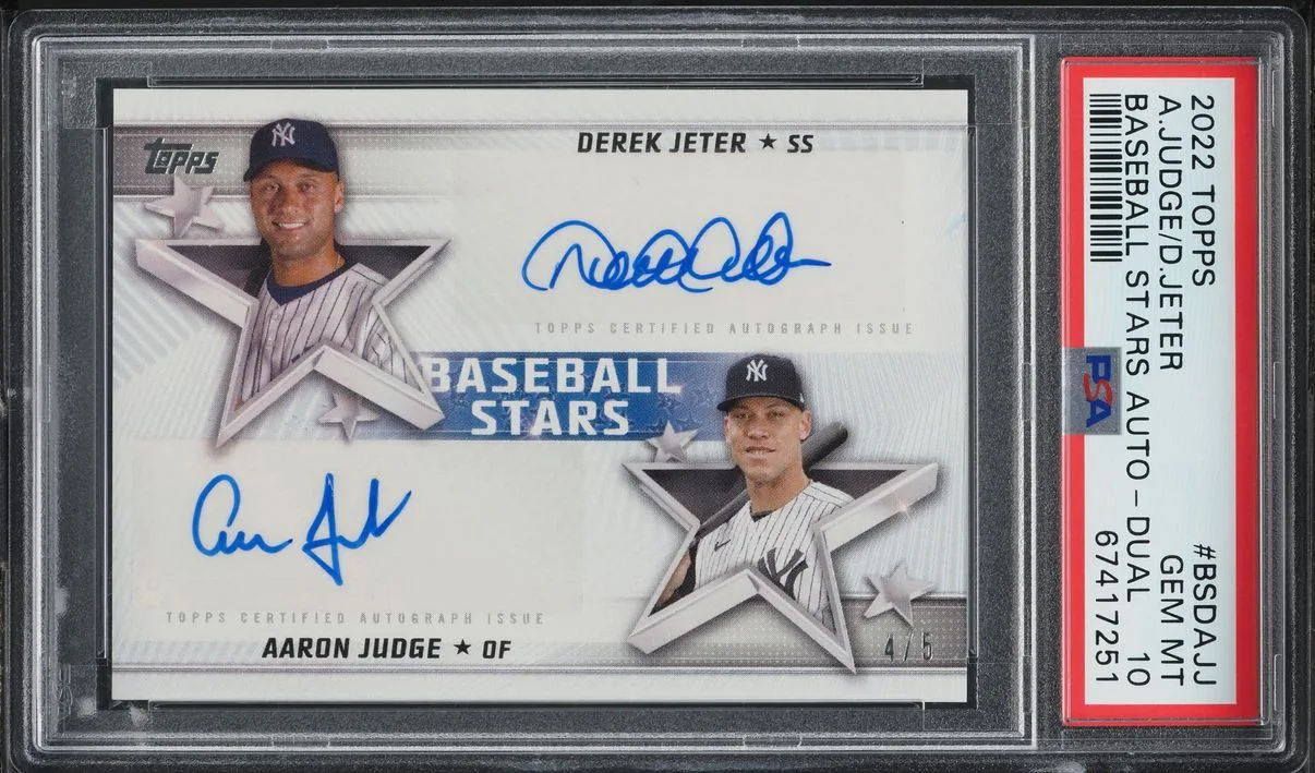 2022 Topps Series 1 Baseball Stars Dual Autographs #BSDA-JJ Derek Jeter/Aaron Judge Auto /5