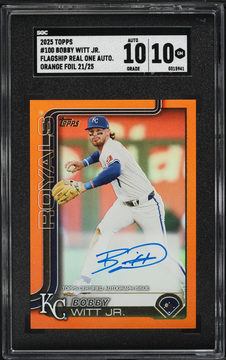 2025 Topps Series 1 Baseball Flagship Real One Autographs #100 Bobby Witt Jr. Orange Foil Auto /25