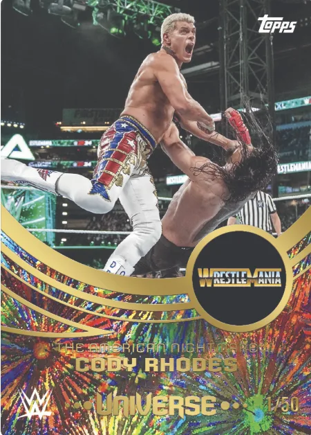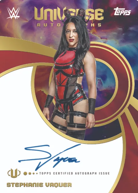 - 2025 Topps Universe WWE is a new WWE trading card brand that highlights the personalities, rivalries, and spectacle of sports entertainment through autograph, relic, and themed insert content.