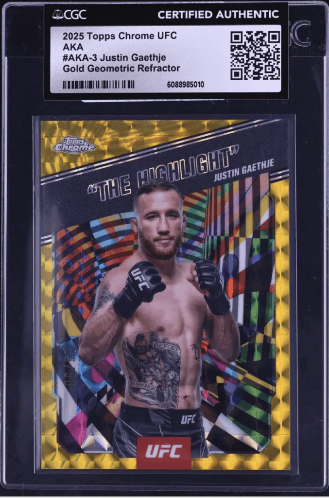 2025 Topps Chrome UFC AKA #AKA-3 Justin Gaethje Gold Geometric Refractor /50