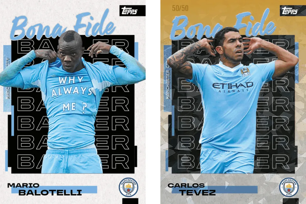 This season’s release introduces Collector’s Corner, a new full-bleed design that captures players mid-corner kick — a moment of pure anticipation — alongside returning favourites like Bona Fide Baller, which highlights defining moments from City’s history. The set even features a special Mario Balotelli “Why Always Me?” card, paying tribute to one of football’s most unforgettable celebrations.