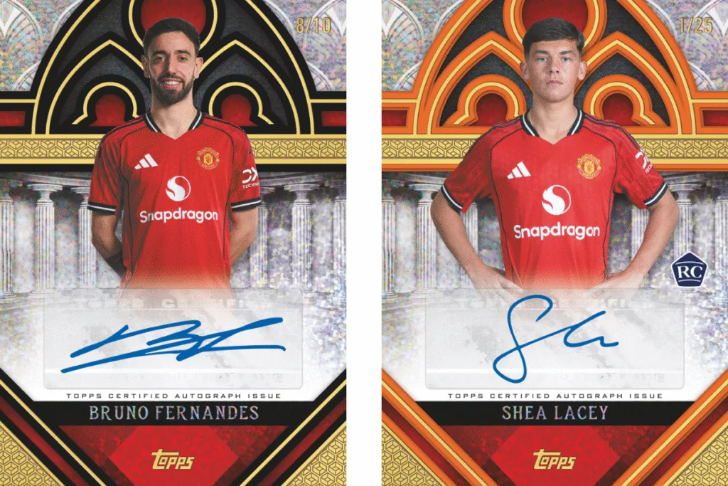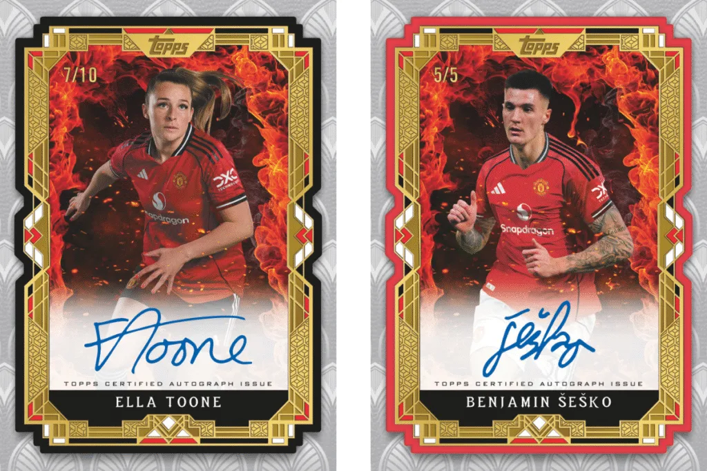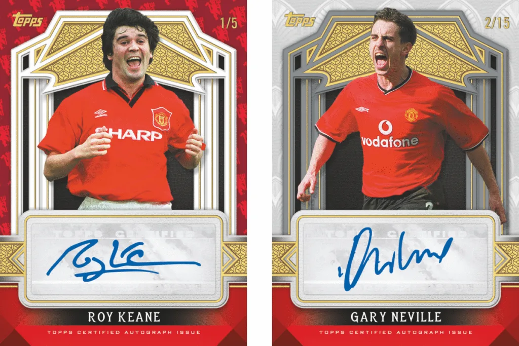 Autographs take centre stage, with a wide range of beautifully designed cards celebrating Manchester United’s greatest players — past and present.