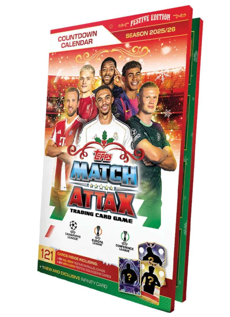 Get ready to countdown to Christmas in the most exciting way possible — with the UCC Match Attax 2025/26 Advent Calendar! Behind every door awaits a new Match Attax surprise, combining the thrill of European football with festive holiday fun.