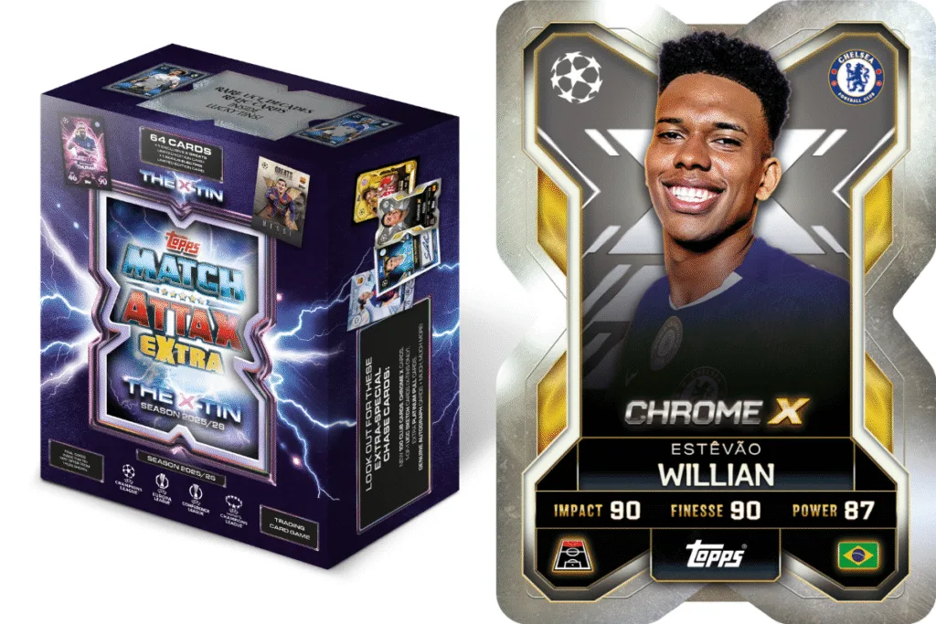 Match Attax Extra 2025/26 is an incredible new release, because it delivers real variety and genuine excitement with every rip. With bold new insert cards like Chrome X, Build-A-Baller, and 3D X-Lens, alongside fan-favourite chases such as 100 Club, not to mention autographs, and player-worn relics, it offers something for every type of collector.