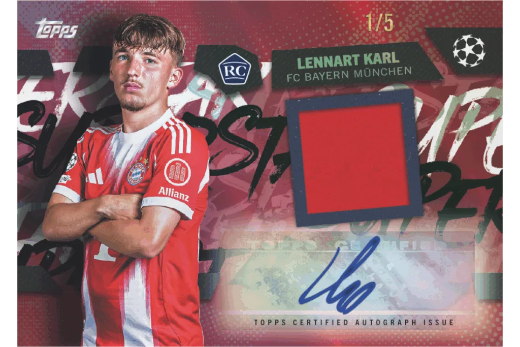 Whether you’re hunting on-card milestone moments, 1/1 masterpieces, or the most visually stunning inserts in the product, there’s no shortage of grails to pursue. Featuring the game’s biggest stars, legendary names, and a new rookie class already making waves on Europe’s biggest stages, these are the cards every collector will be chasing.