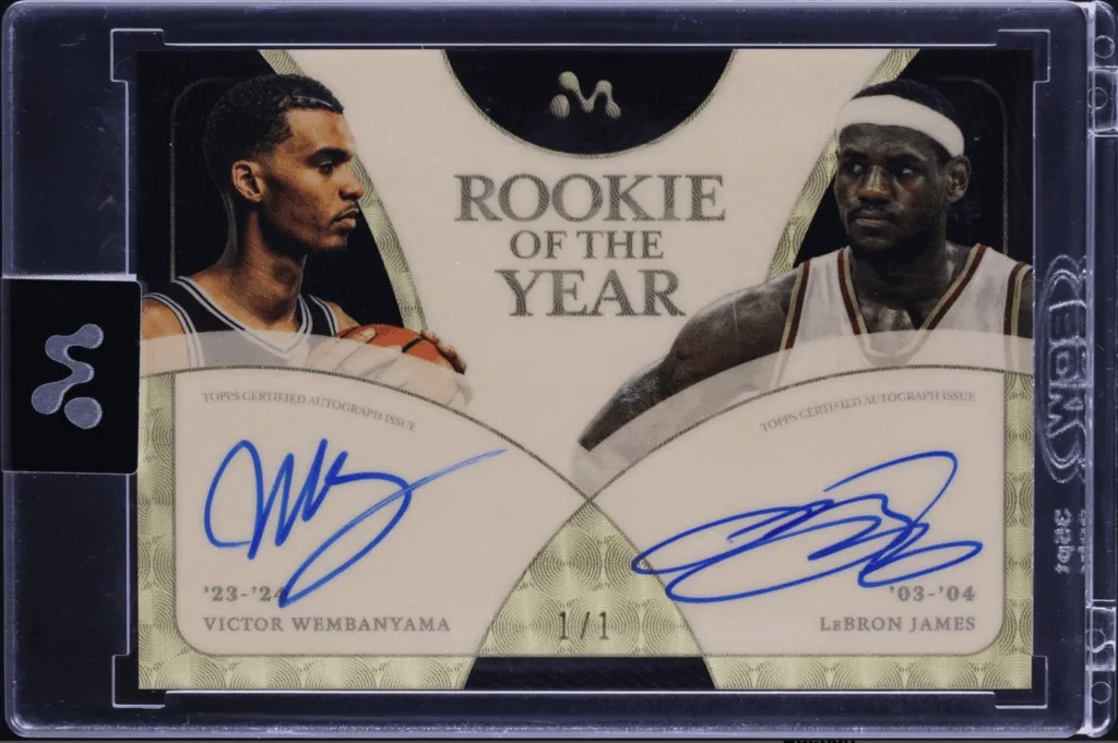 On February 21, 2025, this phenomenal dual auto card with LeBron James and Wembanyama sold for $168,000, making it the most expensive Topps Wemby card sale to date.