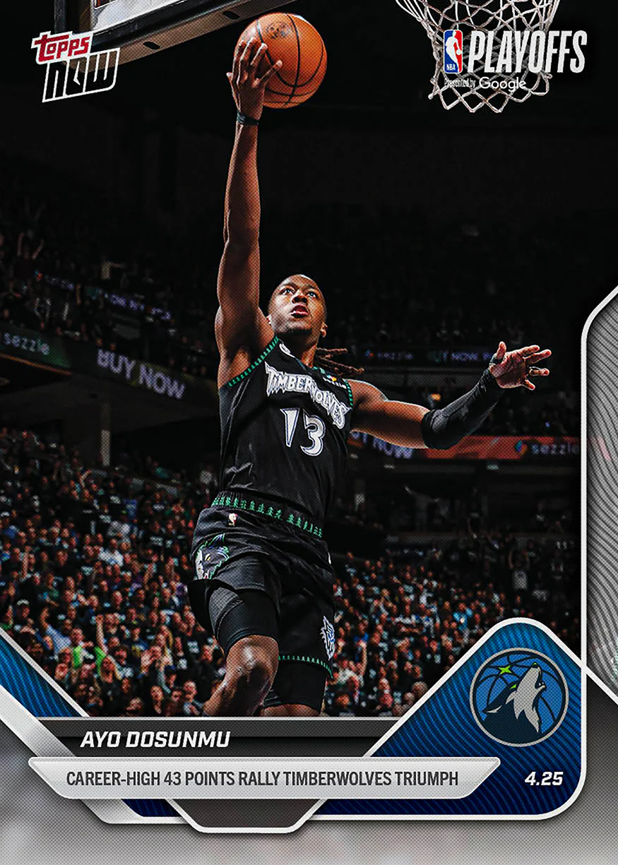 - NBA Topps NOW brings the real-time card concept to basketball, turning standout plays, record-breaking performances, and buzzer-beaters into official trading cards within hours. Each release follows the same limited-time, print-on-demand format as other Topps NOW sets.